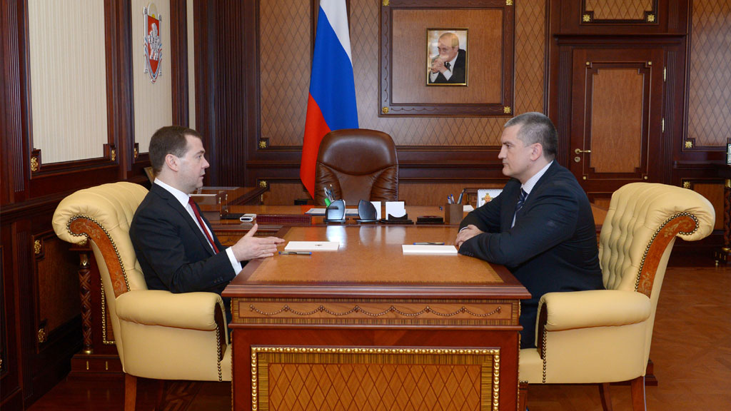 Дмитрий Медведев, председатель Правительства РФ: «Подписано два указа. Один — о создании министерства по делам Крыма, второй — о назначении Олега Генриховича Савельева министром».