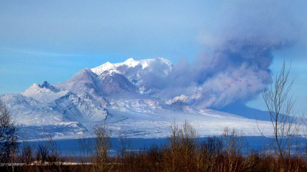 Внимание геофизических и спасательных служб Камчатки приковано к вулкану Шивелуч. Над горой поднялся столб пепла высоту в 6 километров.