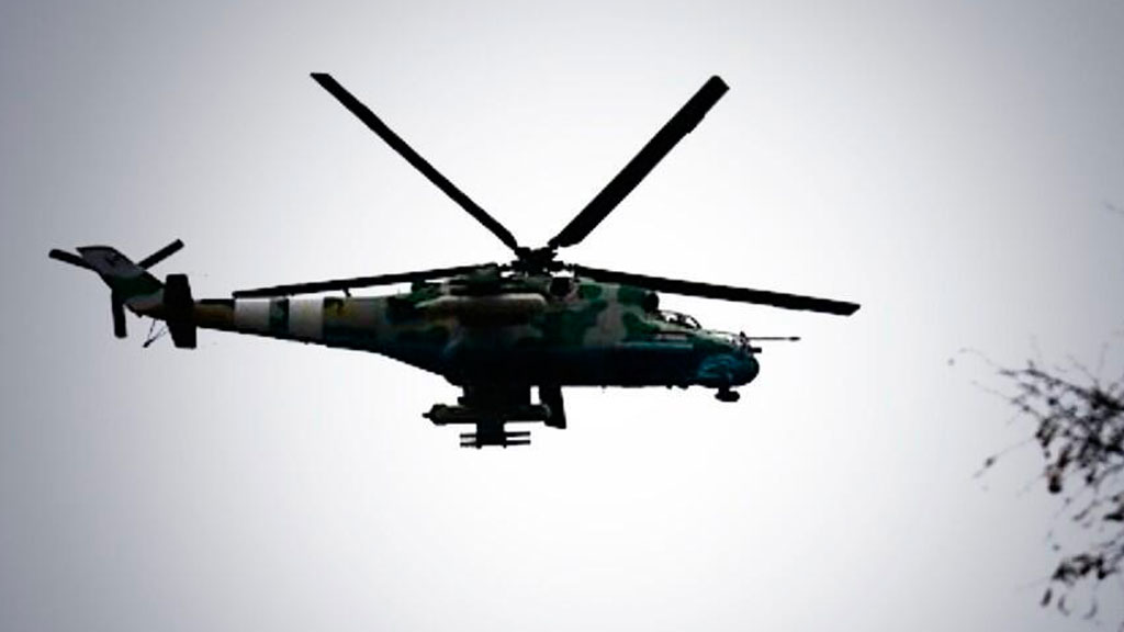 Два боевых вертолета патрулируют воздушное пространство над городом Славянском в Донецкой области. По информации