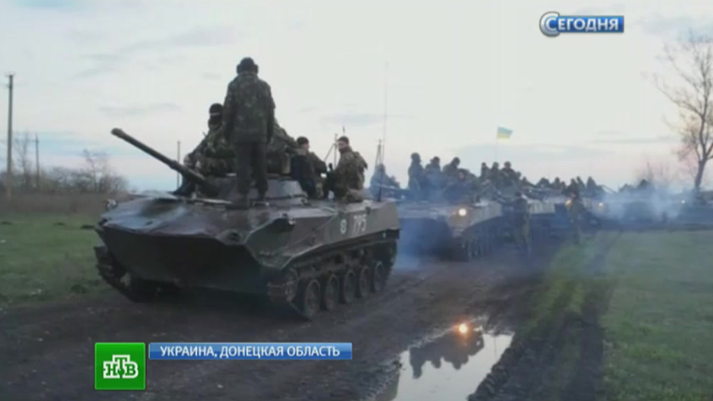 Представитель сил самообороны Краматорска: «Зашли две колонны, танки и БТР. Первая колонна остановилась. Танки пока продвигаются вглубь города».