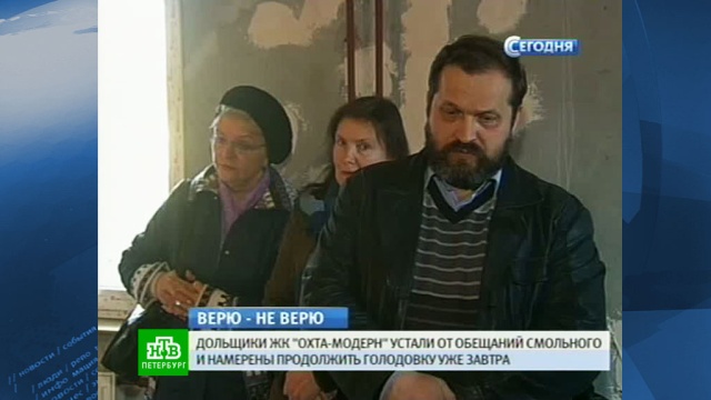 Обманутые дольщики просят, чтобы в новом постановлении Смольного официально были прописаны сроки строительства двух корпусов, которые пока так и не начаты. Как минимум шесть человек готовы полностью отказаться от еды. Очевидно, диалог с представителем власти опять не сложился.