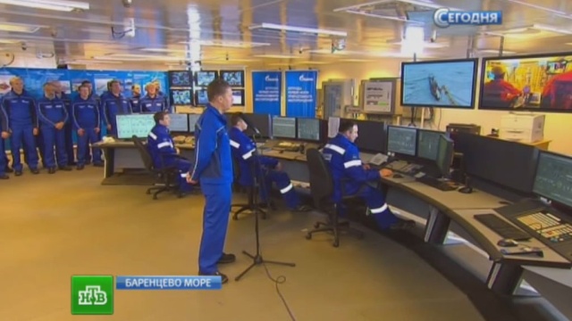 Сегодня с платформы, которая находится в десятках километров от северного побережья, установили телемост. Об отгрузке первой партии нефти с борта «Приразломной» глава «Газпрома» Алексей Миллер доложил президенту Путину.