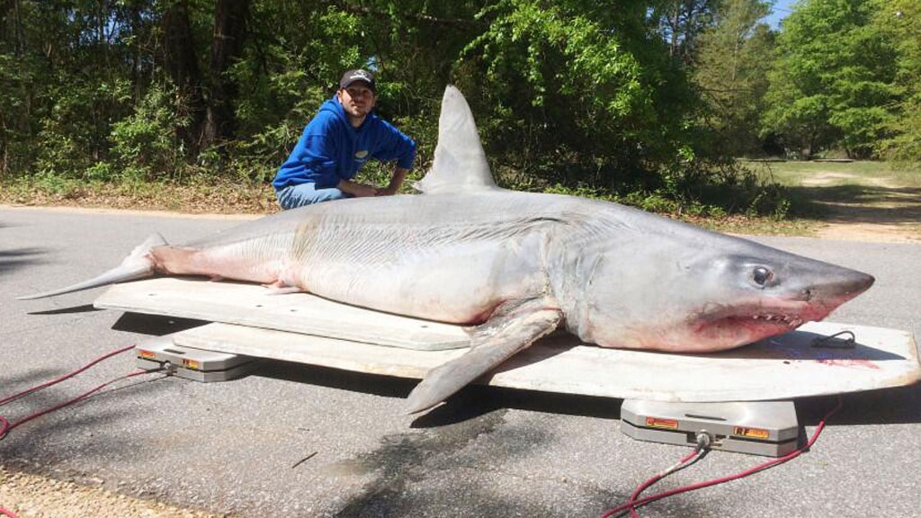 Американский рыбак из города Милтон, штат Флорида, поймал на удочку гигантскую акулу-мако . Длина морского хищника составила 3,35 метра, а вес 365 кг.