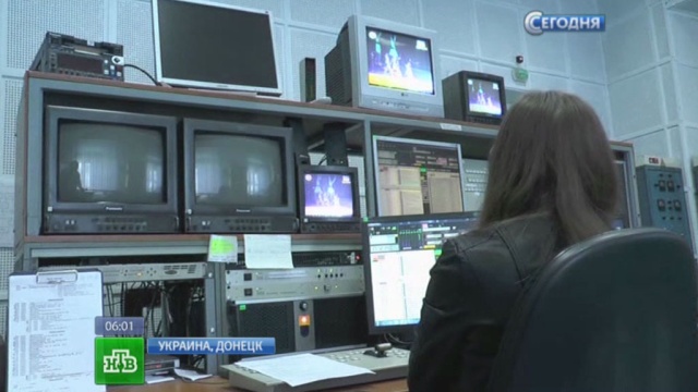 В Донецке вечером 27 апреля возобновил вещание российский телеканал «Россия 24». Произошло это после того, как местный телецентр взяли под контроль сторонники провозглашенной Донецкой Народной Республики. Активисты потребовали вернуть вещание российских каналов, прекращенное по приказу из Киева.