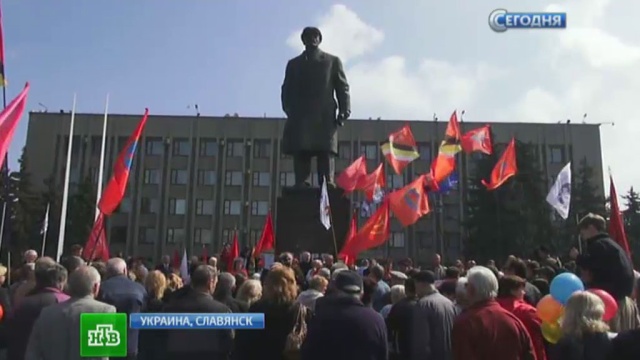 Кругом знамена и самодельные транспаранты с упреками в адрес Киева. День солидарности трудящихся в Славянске в этот раз наполнен новыми смыслами и проблемами.