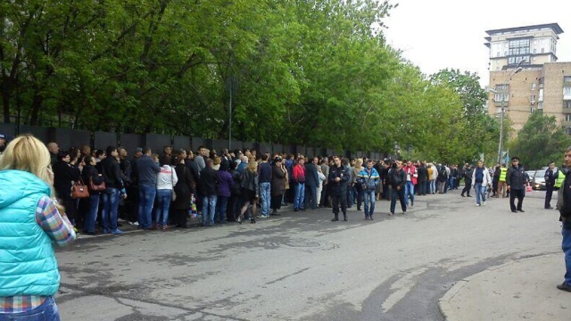 Очередь из желающих проголосовать растянулась на полтора километра от площади Киевского вокзала до дома номер 21, где находится пункт голосования.