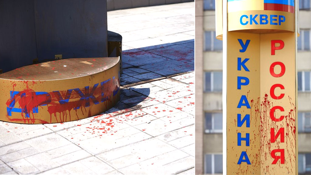 В Харькове минувшей ночью неизвестные испортили стелу, установленную в сквере «Дружба» в знак доброжелательных отношений между РФ и Украиной.