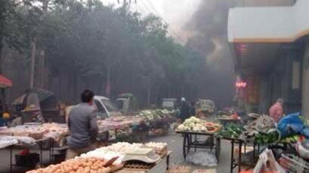 По данным местных СМИ, произошедшие взрывы были терактами. Все произошло в 07:50 по местному времени (03:50 мск) на уличном рынке, расположенном рядом с парком «Жэньминь». Очевидцы рассказывают, что в толпу людей врезались два автомобиля, затем один из них взорвался, из другого — бомбу выкинули наружу.