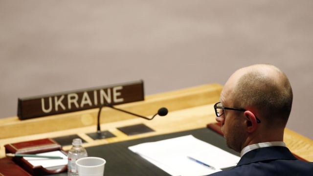Арсений Яценюк: «Мы обращаемся к нашим партнерам в Совет безопасности ООН срочно созвать заседание Совбеза ООН. Мы представим доказательства того, что с российской стороны осуществляются попытки эскалации конфликта и срыва президентских выборов».