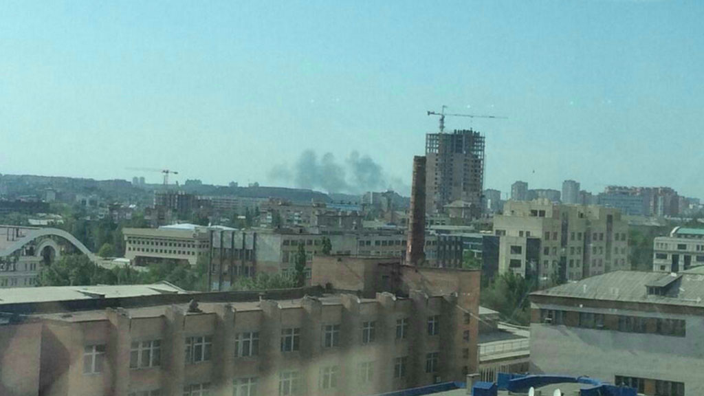 Зона оцепления увеличена, сотрудники силовых структур Донецка просят всех водителей разворачиваться и ехать в сторону центра города, по возможности забирая людей из района обстрела. Ранее над городом летало восемь боевых вертолетов, а также два истребителя.