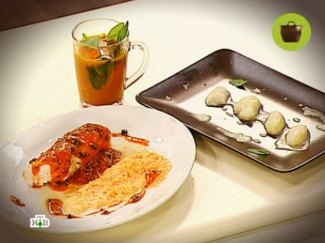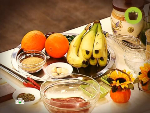 В меню: свинина в апельсиновом соке, крылья «баффало» и яблочный пирог с изюмом. Кулинар советует помнить, что блюда, приготовленные с душой, будут вкуснее вдвойне!