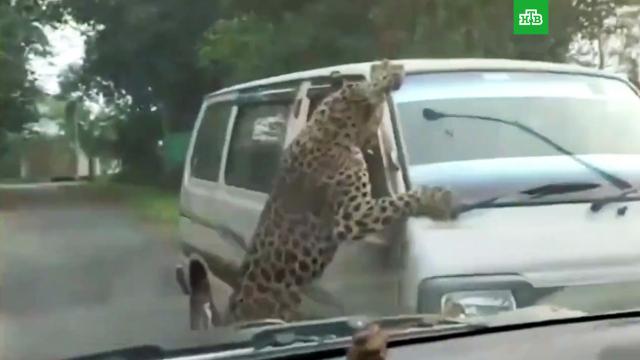 Голодный леопард нападает на людей
