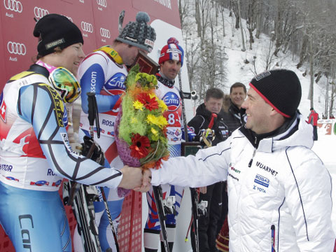 АДРИЕН ТО (БРОНЗОВЫЙ ПРИЗЕР ЭТАПА КУБКА МИРА ПО ГОРНЫМ ЛЫЖАМ В СОЧИ): Хорошая олимпийская трасса, техничная, на склоне много крутых поворотов. Думаю, что на олимпиаде здесь действительно победит сильнейший.