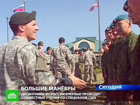 (сюжет) *** КОР: Английский бойцу еще пригодиться. В следующем году, на втором этапе совместных учений уже американцы поедут в Россию.