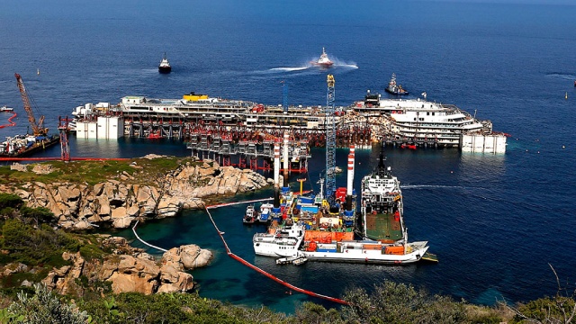 Круизный лайнер, затонувший в январе 2012 года и приведенный в вертикальное положение в сентябре 2013-го , готовят к транспортировке и утилизации. Операция началась ровно через два с половиной года после трагедии.