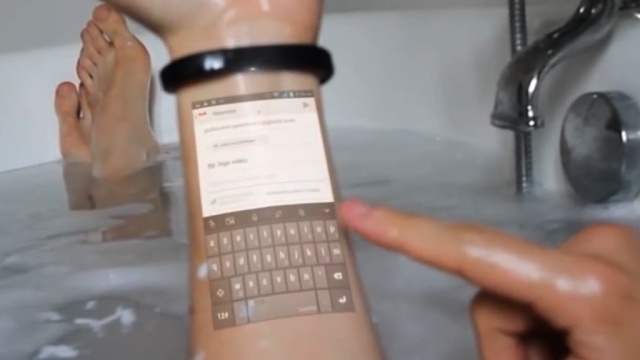 Браслет снабжен проектором, который выводит изображение, и запатентованной системой, отслеживающей нажатия пальцами. Таким образом владелец