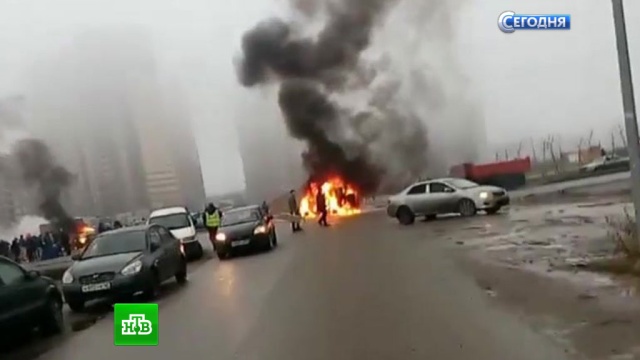 Как передает корреспондент НТВ Николай Булкин, один страж порядка погиб в салоне, второму удалось выбраться, он ранен. Видеозапись, которую очевидцы сделали через несколько минут после случившегося, запечатлела, как прохожие пытаются оказать первую помощь пострадавшему правоохранителю.