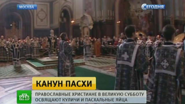 Миллионы православных сегодня собираются в храмах и церквях: днем, чтобы освятить куличи и пасхальные яйца, а вечером на всенощное бдение.