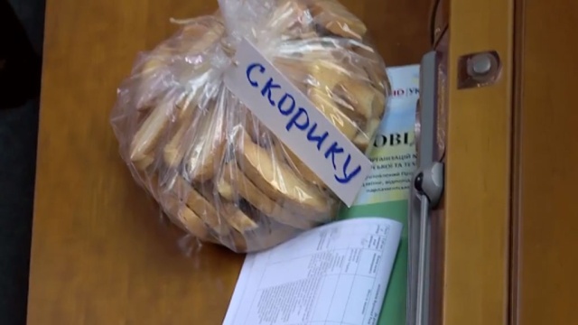 Что же касается сухарей, то их, как сообщает УНИАН, разбросали по рабочему месту депутата и полу.