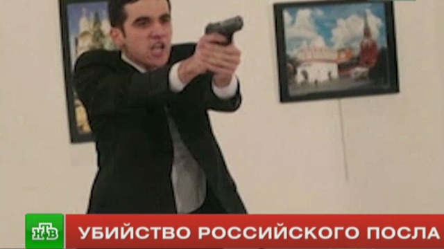 Посол России Андрей Карлов был убит в во время своего выступления на открытии выставки в Анкаре. Несколько секунд убийца вел непрерывную стрельбу, всего он сделал 9 выстрелов. После того, как посол упал, стрелок открыл огонь по другим посетителям выставки. Сразу после этого он стал кричать на турецком и арабском языках.