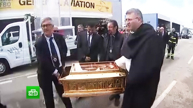 Из Италии в российскую столицу прибыли мощи святителя Николая Чудотворца. В аэропорт города Бари святыню доставили в ковчеге с бронированным стеклом в сопровождении журналистов.