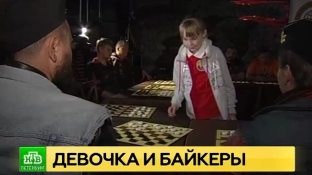 Как сообщает корреспондент НТВ Мария Сапожникова, играющие на черной стороне быстро стали сдавать позиции. Уже не приходилось делать устрашающее лицо, напряженный мыслительный процесс сам делал свое дело. Позже Вика признается, что лишь один из 12 байкеров был достойным соперником.
