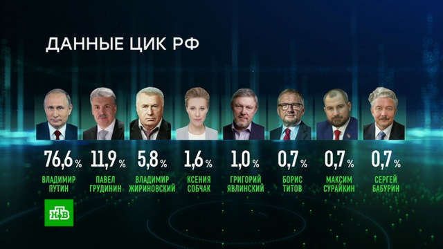 В Центризбиркоме сообщили, что действующий лидер страны Владимир Путин получил на президентских выборах 18 марта поддержку абсолютного большинства избирателей.