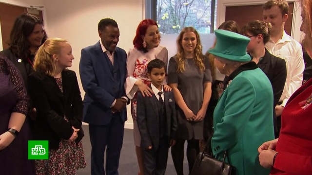 Королева Елизавета II приехала с визитом в благотворительную организацию. Там ее встречали сотрудники центра с детьми, многие из которых приемные.