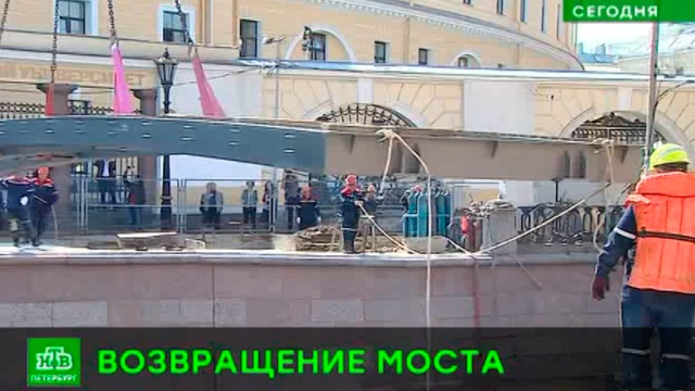Сегодня реставраторы начали возвращать на место отреставрированные элементы одной из самых знаменитых переправ через канал Грибоедова.