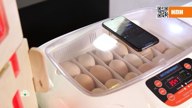 По всем правилам температура выставляется на 37 с половиной градусов, уровень влажности доводится до 45%. А теперь главное: на один из инкубаторов кладется тот самый смартфон. На него по четкому графику будут регулярно поступать звонки.