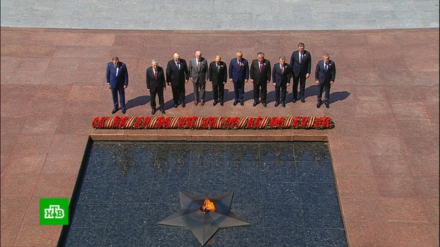 Владимир Путин и главы государств, которые прибыли в Москву на праздничные мероприятия по случаю 75-летия Победы, возложили цветы к Могиле Неизвестного Солдата в Александровском саду.