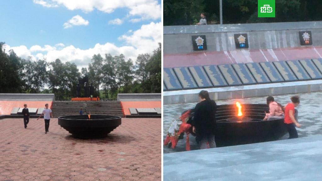 Полиция начала проверку после того, как местные жители разместили в соцсетях кадры с подростками, сидящими в чаше Вечного огня мемориала воинам, погибшим в годы Великой Отечественной войны, в городе Артём.