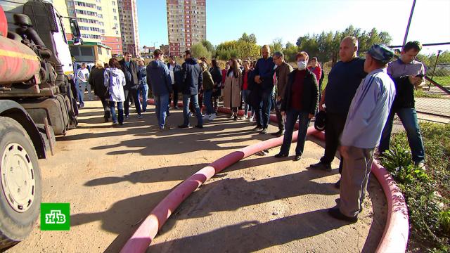 Как оказалось, 18 домов, в каждом из которых больше тысячи жильцов, школу и детский сад обслуживает одна насосная станция. Мощности ее просто не хватает. Подрядчик, по сути человек сторонний, честно констатирует — ситуация патовая.
