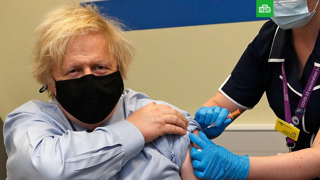 Британский премьер Борис Джонсон сделал прививку от коронавируса. Фотографии того, как политику делают укол в плечо препаратом, разработанным Оксфордским университетом и