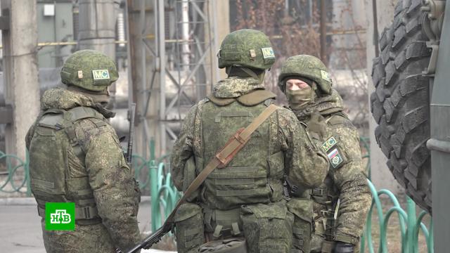 Миротворцы продолжают дежурить на ключевых объектах страны. Под охраной десятки зданий и сооружений. Сейчас, например, десантники тренируются отражать возможные атаки. Дни волнений одна из крупнейших ТЭЦ страны пережила спокойно. Отсюда до