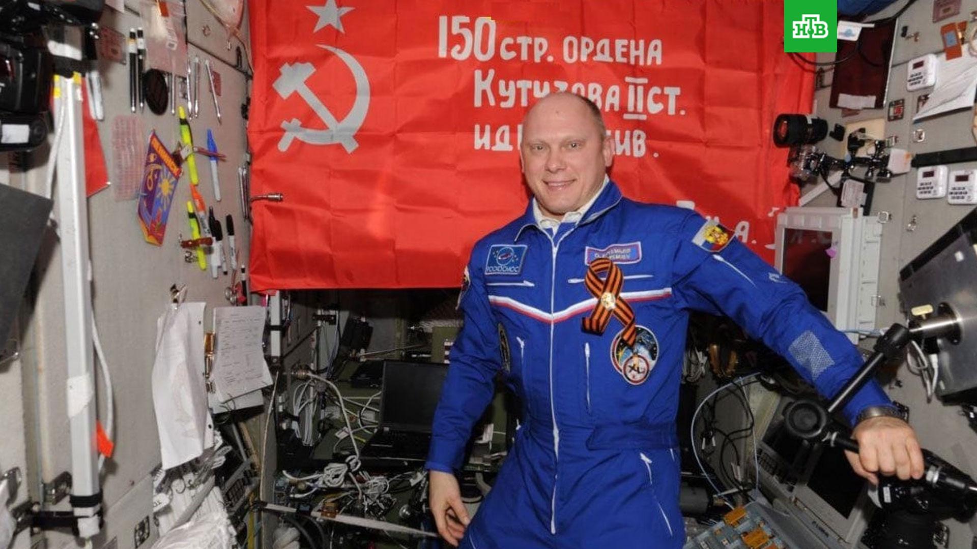 Космонавт Александр Скворцов попросил передать командующему операцией на Украине знамя Победы, побывавшее на орбите.