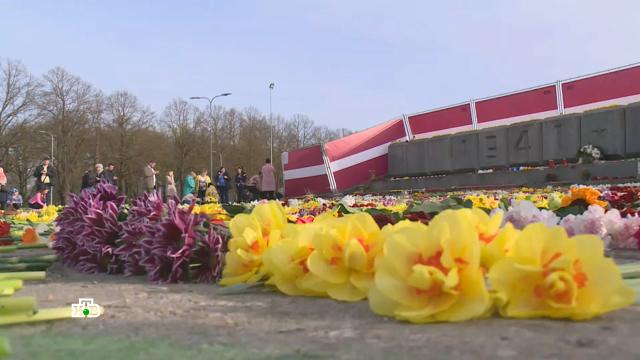 А в сейме проголосовали вообще снести памятник Освободителям Риги. Глава МВД заявила: ничему, что связано с Россией, в Латвии нет места. При этом сама она говорит на русском языке. А депутат Александр Кирштейнс заявил, что еще лучше избавиться не только от памятников, но и от всех русскоязычных, которые несли цветы, и недвусмысленно намекнул на методы нацистов. Их пособников в Латвии чтут и называют борцами за независимость. Поэтому полицейские не мешают украинцам демонстрировать символику запрещенного в России батальона «Азов».