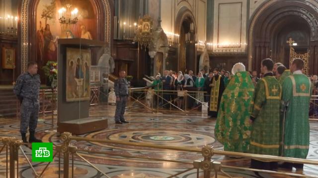 Главной точкой праздника стал храм Христа Спасителя, где патриарх Кирилл служит литургию. В ознаменование праздника в храме выставили икону «Троица» Андрея Рублёва. За безопасностью шедевра древнерусского искусства следят сотрудники Росгвардии.