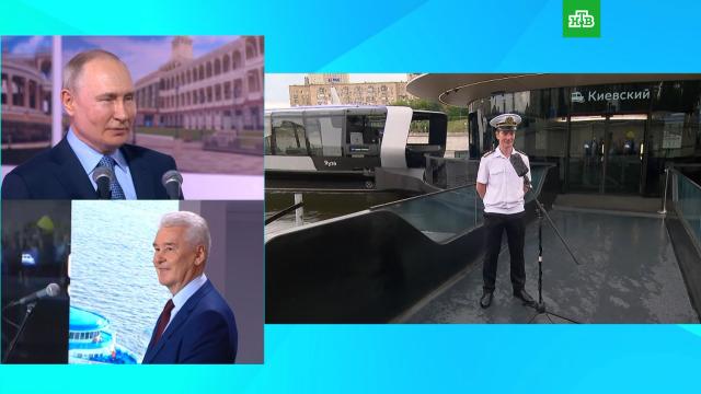 На Северном речном вокзале в Москве прошла церемония запуска движения электрических речных трамвайчиков, в которой приняли участие президент России Владимир Путин и мэр столицы Сергей Собянин. Глава государства, пожелав доброго пути, дал по видеосвязи команду на запуск, и первый трамвайчик начал движение по