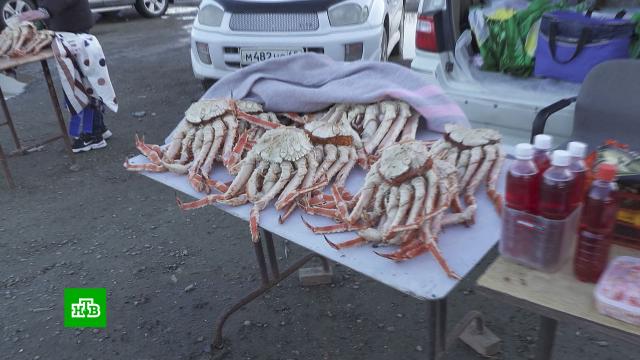 Торговцы свою причастность к выловленному крабу не признают и бросают прилавки, придумывая отговорки на ходу. Говорят, что морепродукты не их, продавцы ушли, а они сюда приехали просто поужинать. Теперь пограничники выясняют, откуда морские обитатели взялись на прилавках. Только за минувший месяц сотрудники сахалинского погрануправления ФСБ провели несколько успешных операций по задержанию браконьеров.