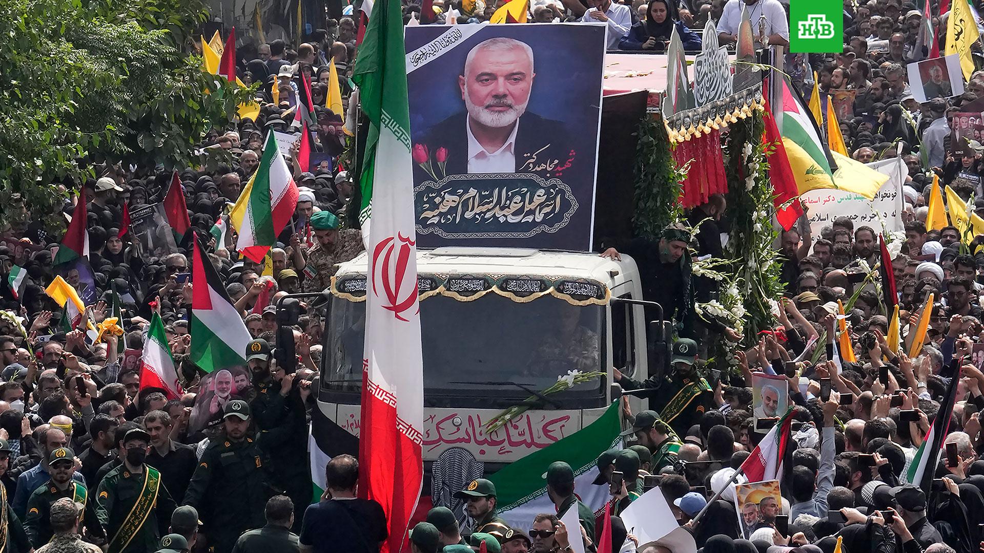 Сегодня с погибшим Исмаилом Ханией простились в Иране. Гроб с телом политика провезли по заполненным людьми улицам Тегерана.