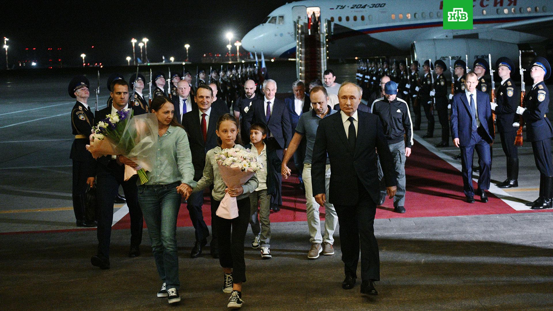 Напомним, сегодня в Москву вернулись 8 россиян, которые провели несколько лет в западных тюрьмах. Освобожденных сограждан у трапа встречал президент РФ Владимир Путин. Он приветствовал каждого и поздравил всех с возвращением домой.