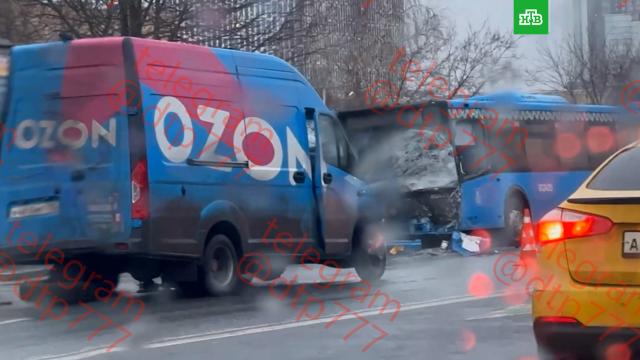 На юго-западе Москвы «Газель» врезалась в городской автобус.