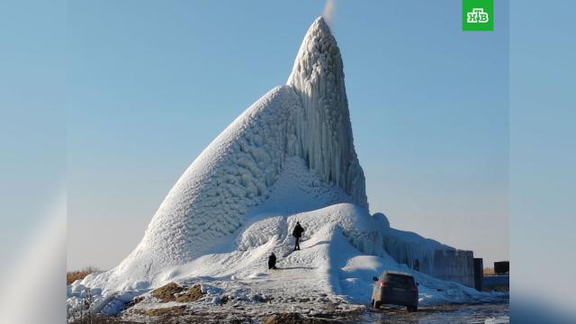 Ледяная гора высотой в несколько метров образовалась в Азовском районе Ростовской области. Местные жители делятся в соцсетях кадрами с места.