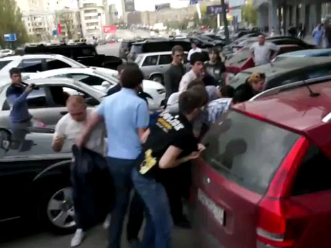 НТВ.Ru напоминает: несколько дней назад активисты группы «Стопхам» (одно из подразделений движения «Наши»), борющегося с нарушениями ПДД, проводили свою обычную акцию. Молодые люди помечали неправильно припаркованные автомобили наклейками «Мне плевать на всех. Я паркуюсь, где хочу».