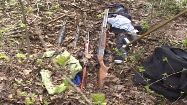 Из сообщения управления МВД по Белгородской области: «В результате сплошной отработки прилегающей к месту задержания обвиняемого в убийстве шести человек сотрудники полиции обнаружили схрон. Пять единиц огнестрельного оружия: 3 карабина и 2 гладкоствольных ружья были спрятаны под сумками с патронами и одеждой».