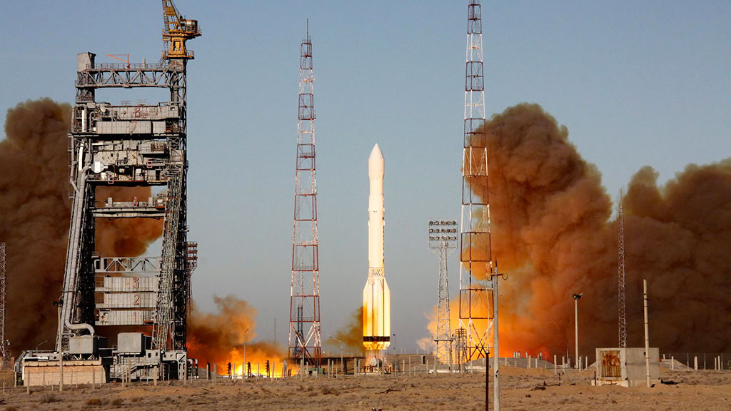 С аэродрома «Байконур» в понедельник стартовала ракета-носитель «Протон-М» . Она выведет в космос российский спутник-ретранслятор «Луч-5В» и казахстанский спутник связи «КазСат-3» .