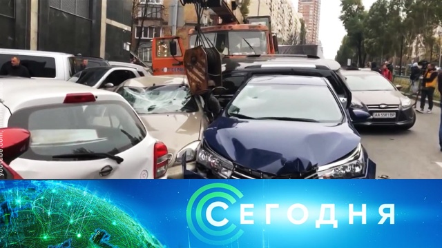 Отказ тормозов: в Киеве автокран на большой скорости протаранил стоявшие на светофоре машины.