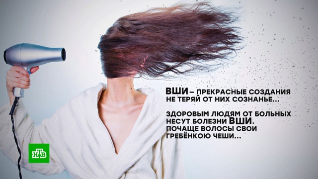 Юлия Лопатина, энтомолог: «Достаточно взмахнуть волосами где-то в автобусе: если прядь соприкоснулась с волосами человека, зараженного вшами, паразит моментально переходит. Для этого у нее есть специальные приспособления на лапках, такие крепкие коготки, которыми они цепко ухватываются за волосы».