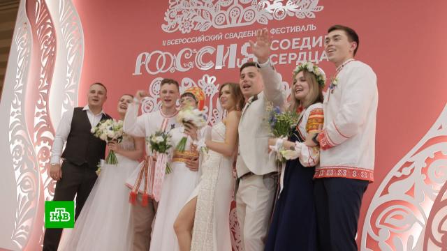 Соединяя сердца: более 200 пар одновременно поженились в центре Москвы